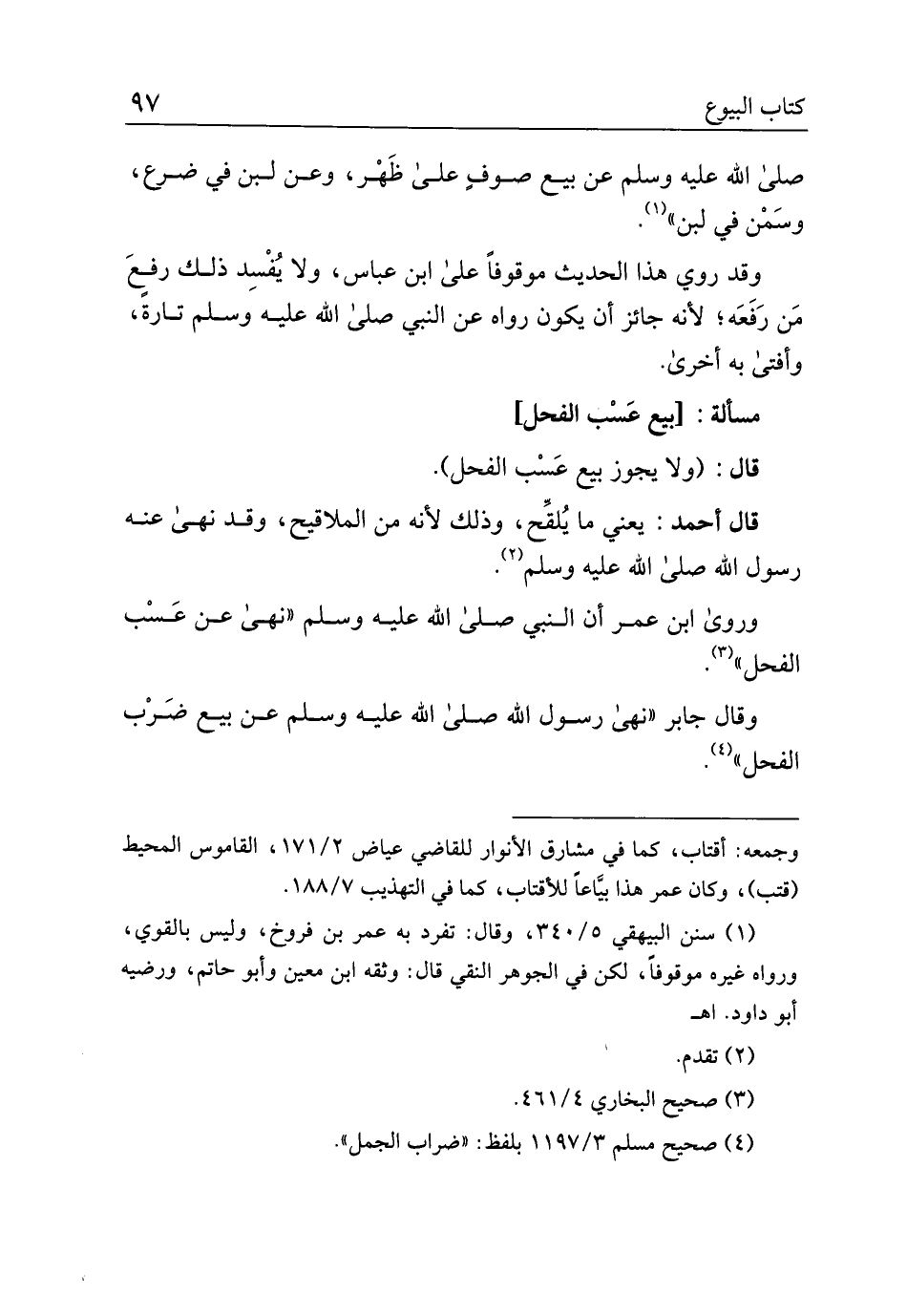 قال أحمد: يعني ما يلقح، وذلك لأنه من الملاقيح، وقد نهى عنه رسول الله صلى الله عليه وسلم.