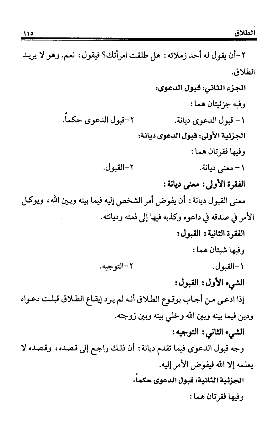 معنى القبول ديانة: أن يفوض أمر الشخص إليه فيما بينه وبين الله، ويوكل الأمر في صدقه في داعوه وكذبه فيها إلى ذمته وديانته.