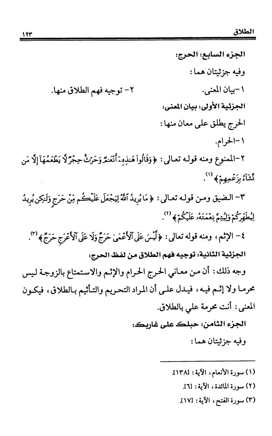 الجزئية الثانية: توجيه فهم الطلاق من لفظ الحرج: