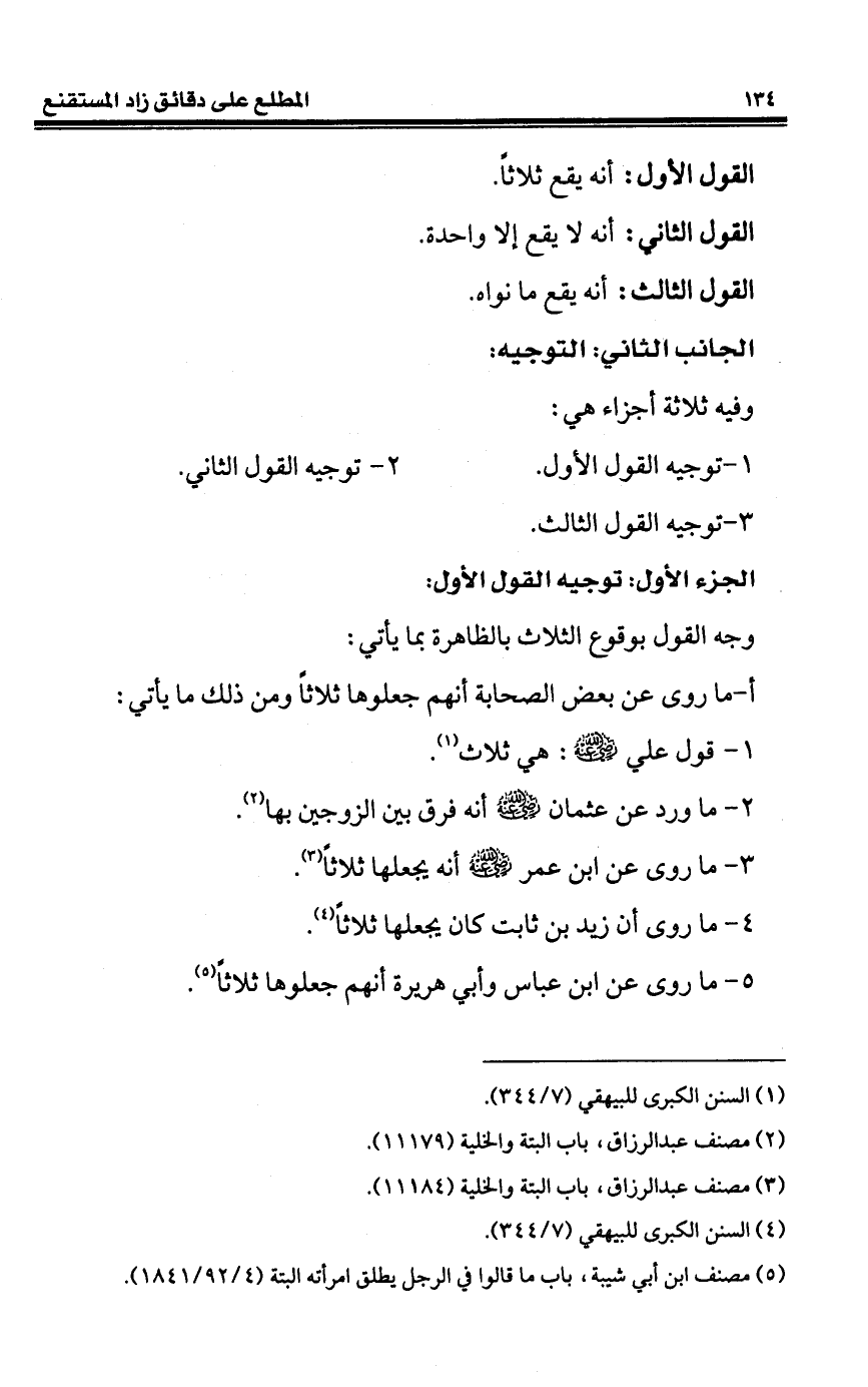 1 - قول علي - رضي الله عنه -: هي ثلاث (¬1).