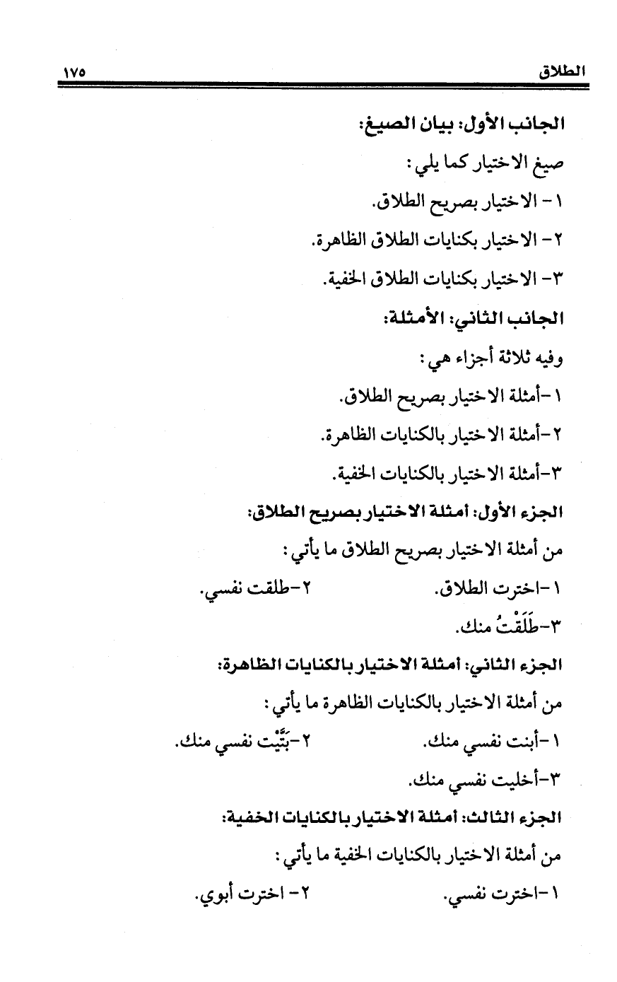 1 - أمثلة الاختيار بصريح الطلاق.