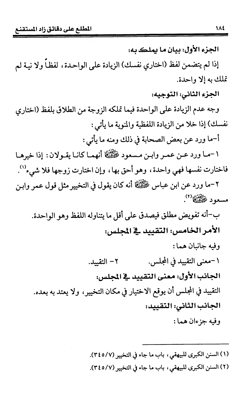 (¬2) السنن الكبرى للبيهقي، باب ما جاء في التخيير (7/ 345).