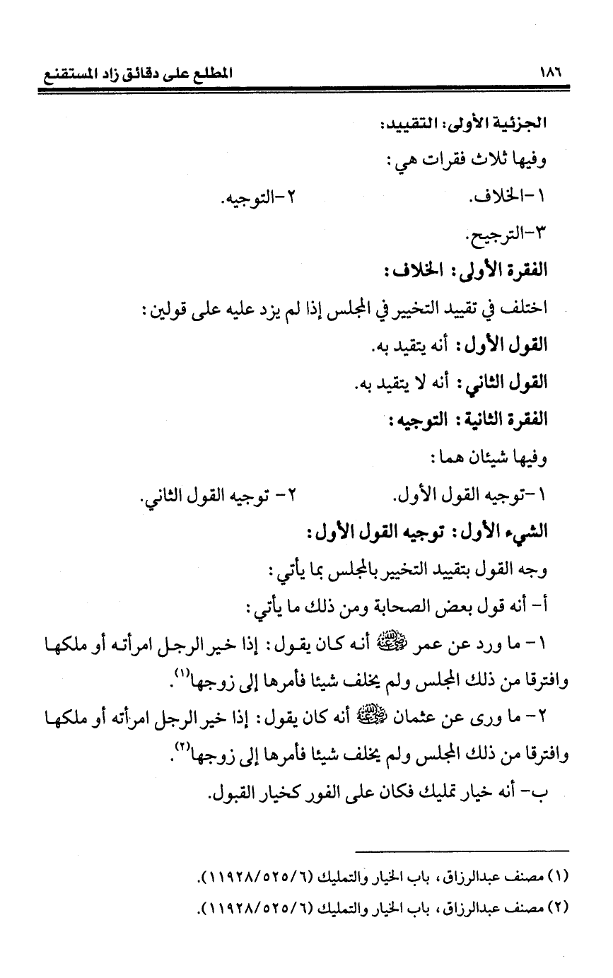 (¬1) مصنف عبد الرزاق، باب الخيار والتمليك (6/ 525/ 11928).