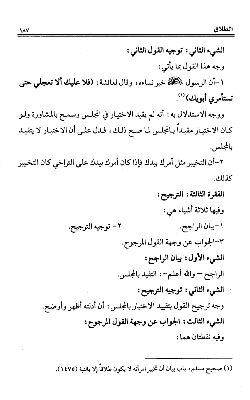 (¬1) صحيح مسلم، باب بيان أن تخيير امرأته لا يكون طلاقًا إلا بالنية (1475).