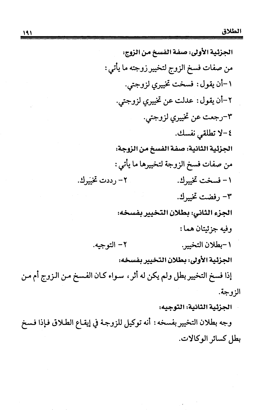 الجزئية الأولى: صفة الفسخ من الزوج: