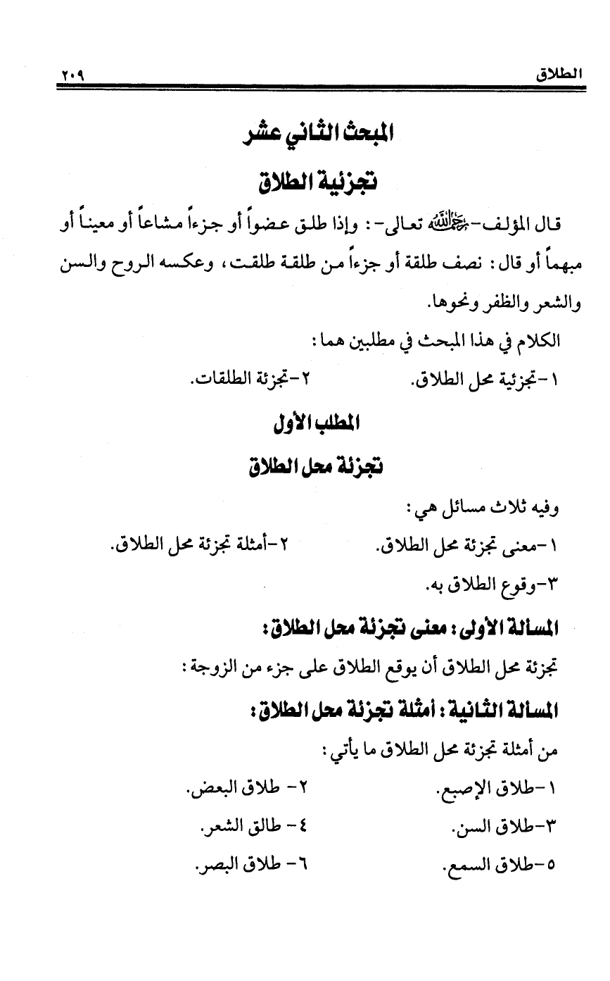 تجزئة محل الطلاق أن يوقع الطلاق على جزء من الزوجة: