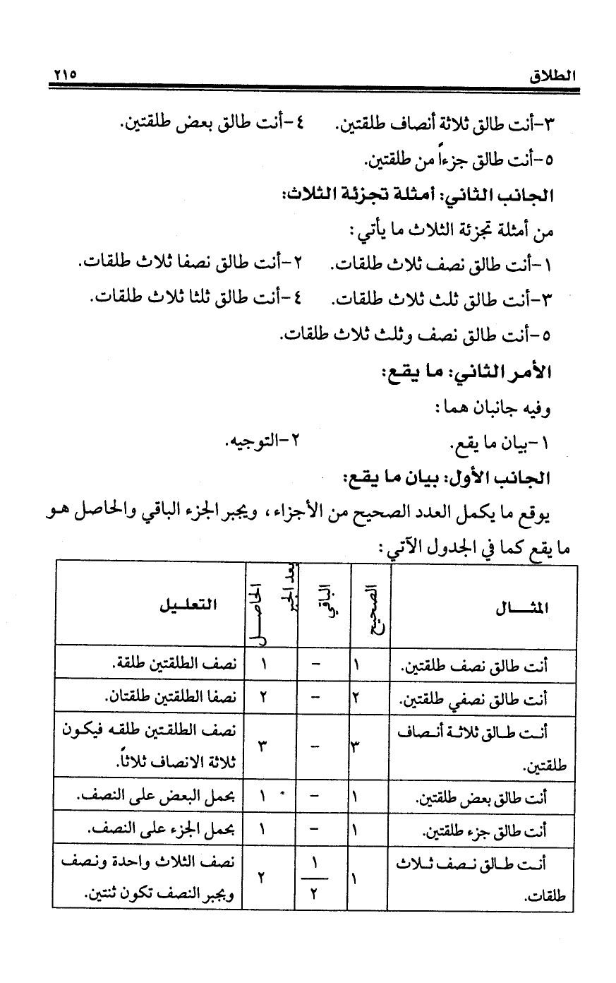 أنت طالق نصف ثلاث طلقات .... 1 ... 1/ 2 ... 2 ... نصف الثلاث واحدة ونصف وبجبر النصف تكون ثنتين.