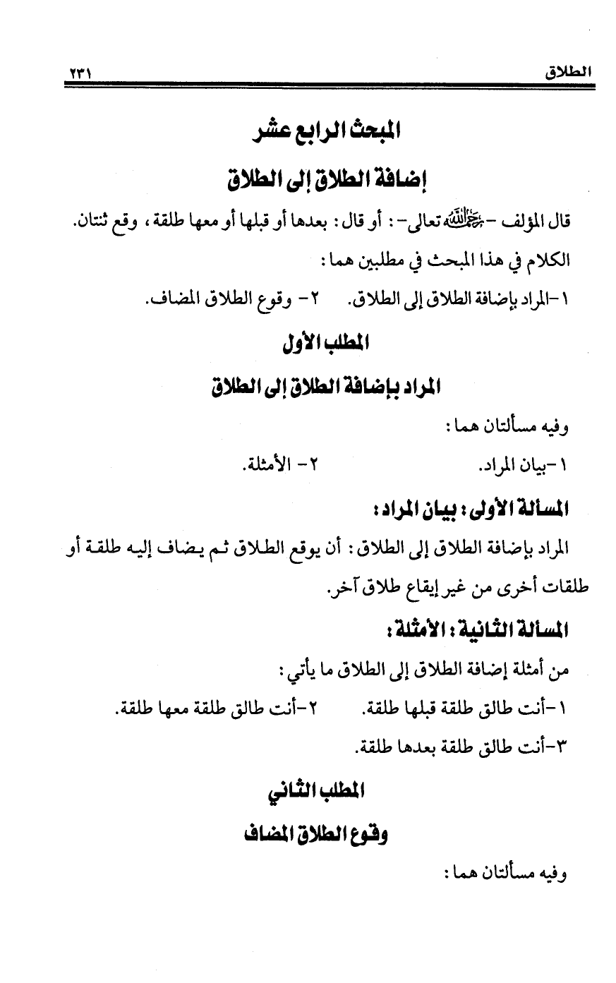 المبحث الرابع عشر إضافة الطلاق إلى الطلاق