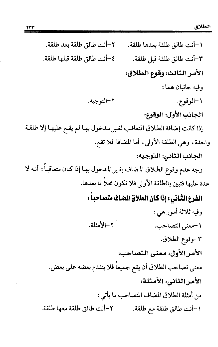 من أمثلة الطلاق المضاف التصاحب ما يأتي:
