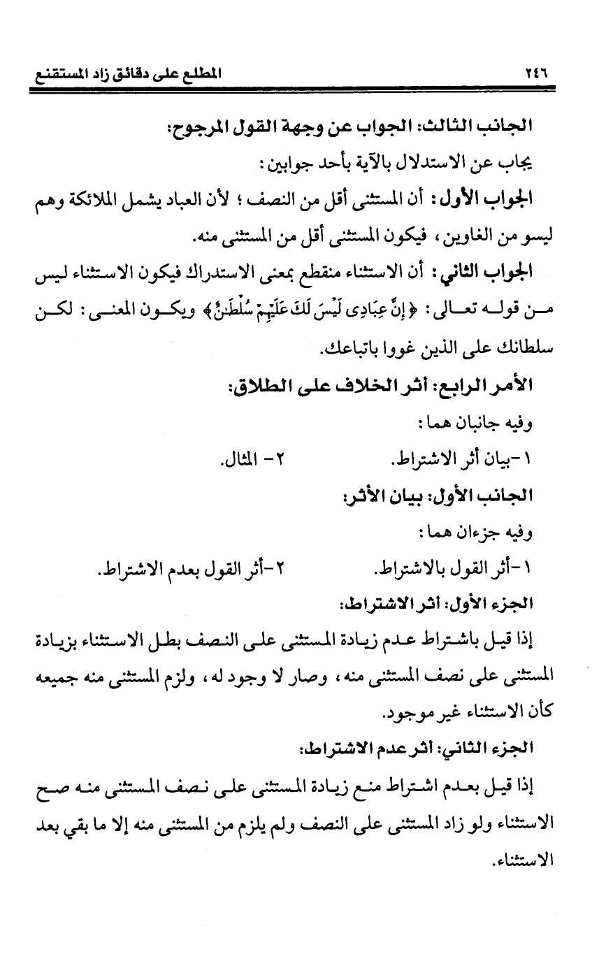 الجواب الأول: أن المستثنى أقل من النصف؛ لأن العباد يشمل الملائكة وهم ليسو من الغاوين، فيكون المستثنى أقل من المستثنى منه.