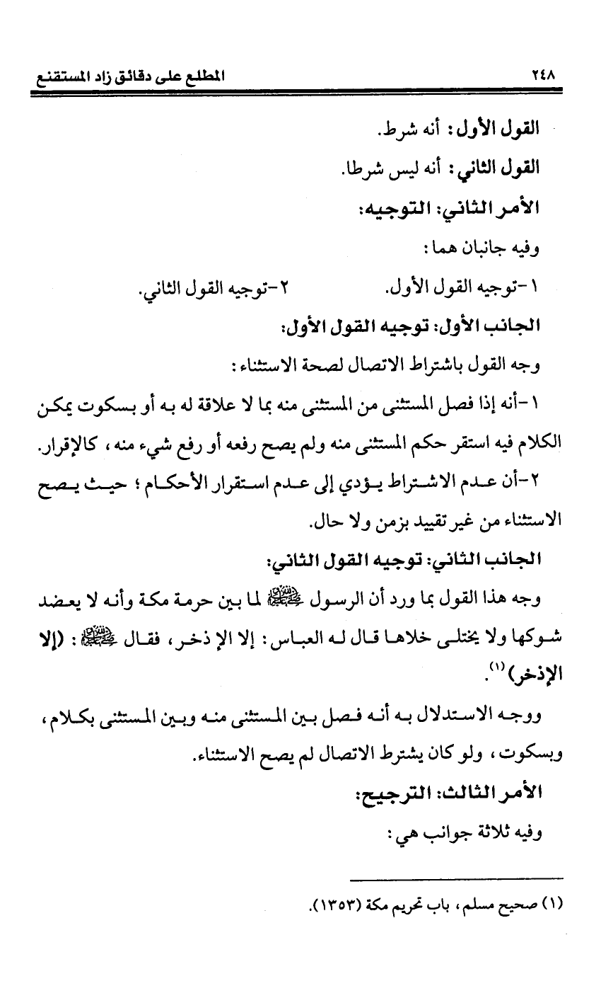 2 - أن عدم الاشتراط يؤدي إلى عدم استقرار الأحكام؛ حيث يصح الاستثناء من غير تقييد بزمن ولا حال.