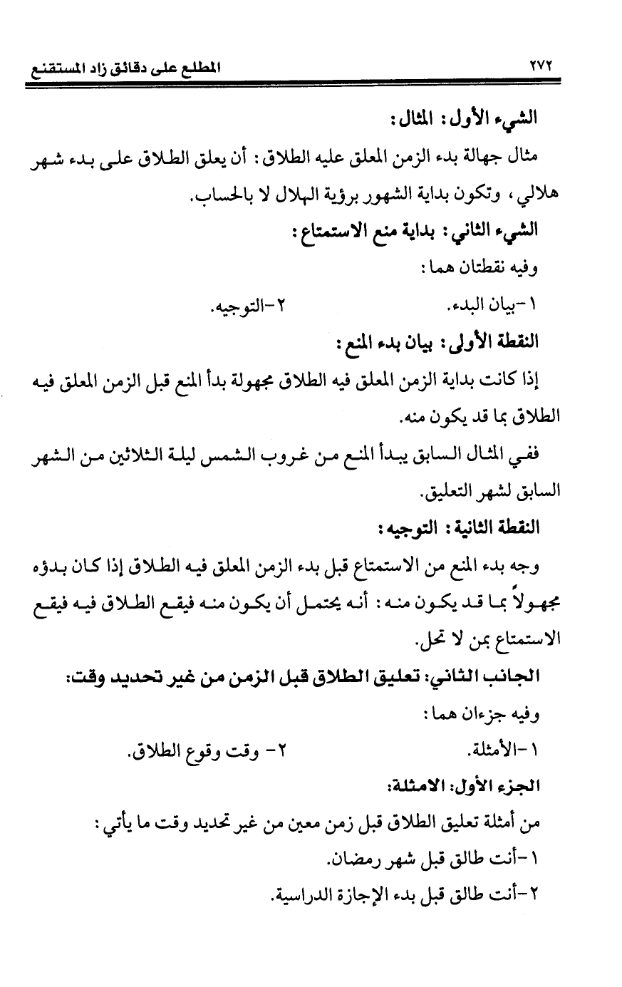 مثال جهالة بدء الزمن المعلق عليه الطلاق: أن يعلق الطلاق على بدء شهر هلالي، وتكون بداية الشهور برؤية الهلال لا بالحساب.