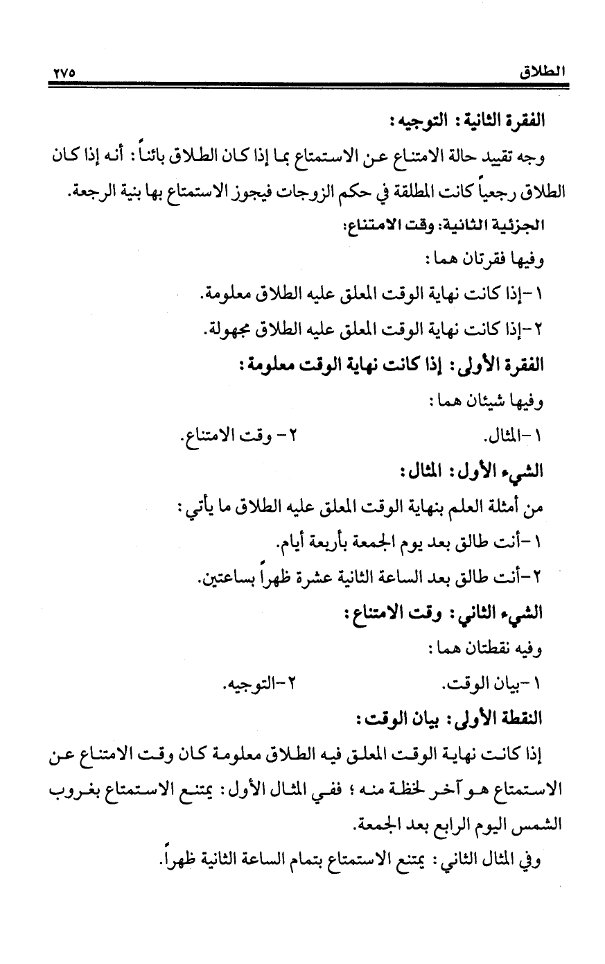 1 - إذا كانت نهاية الوقت المعلق عليه الطلاق معلومة.