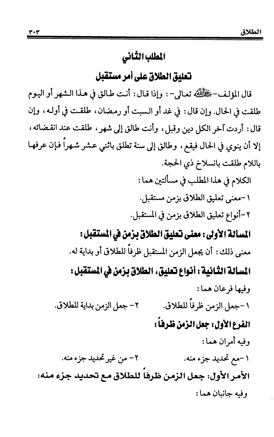 المطلب الثاني تعليق الطلاق على أمر مستقبل