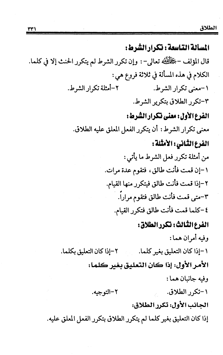 المسألة التاسعة: تكرار الشرط: