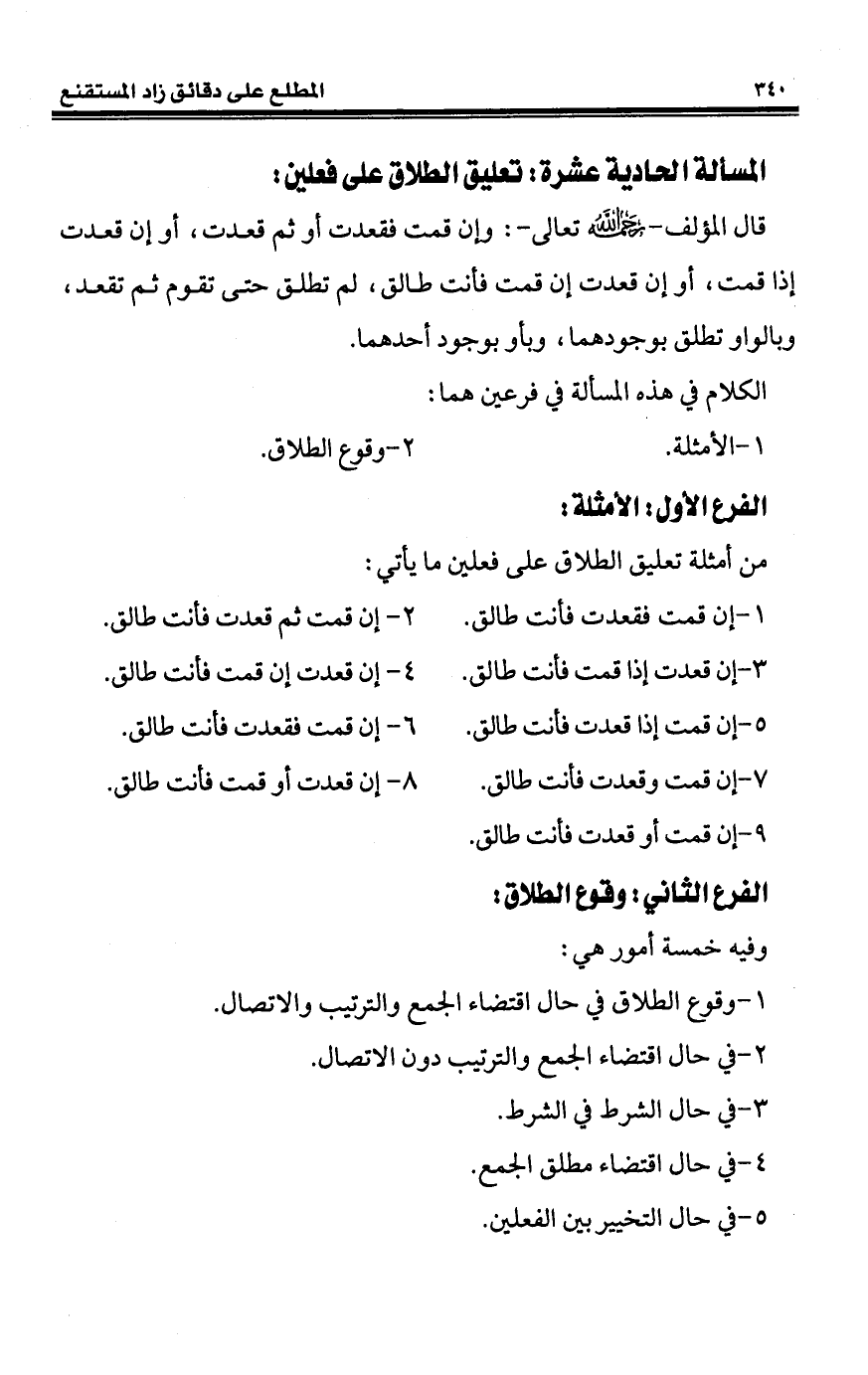 المسألة الحادية عشرة: تعليق الطلاق على فعلين: