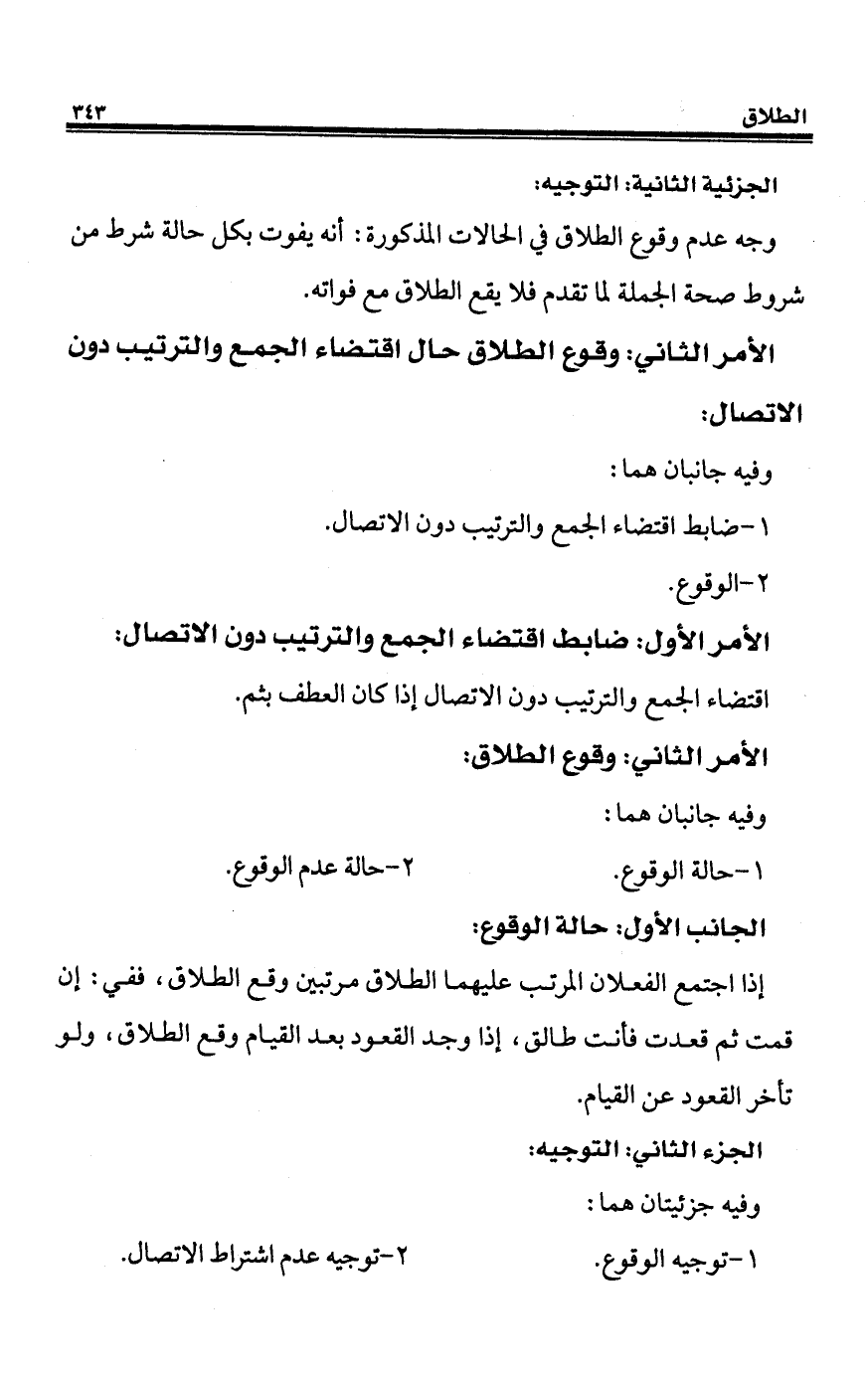 الأمر الثاني: وقوع الطلاق حال اقتضاء الجمع والترتيب دون الاتصال: