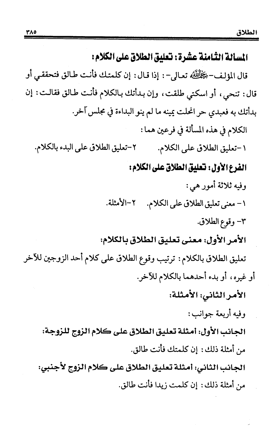 المسألة الثامنة عشرة: تعليق الطلاق على الكلام: