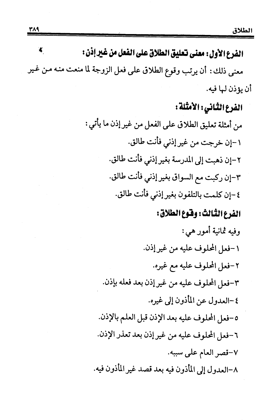 من أمثلة تعليق الطلاق على الفعل من غير إذن ما يأتي: