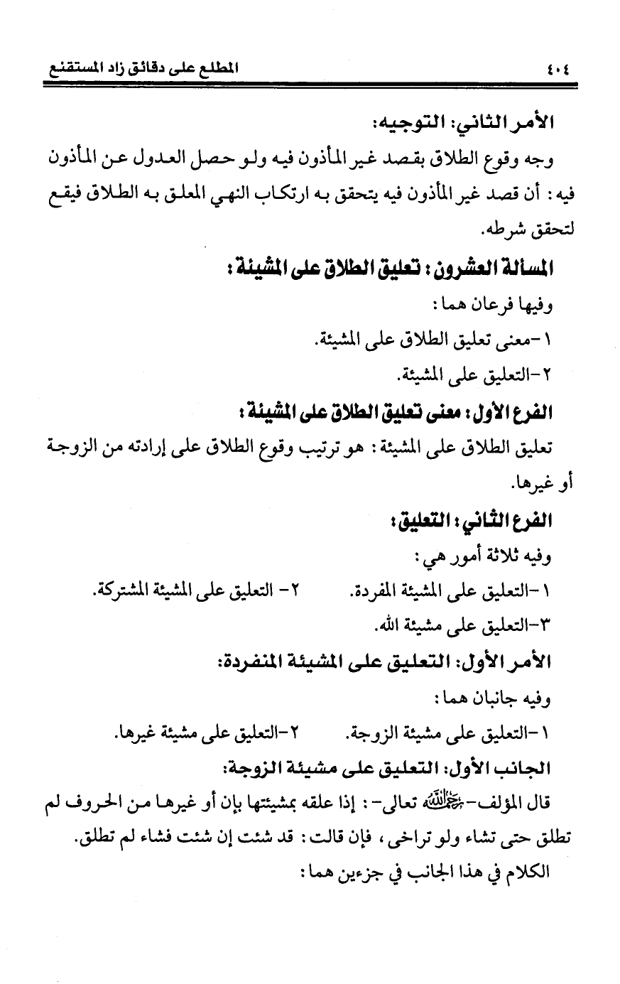 المسألة العشرون: تعليق الطلاق على المشيئة: