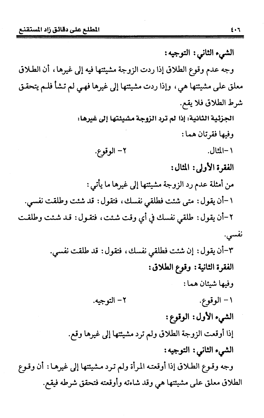 من أمثلة عدم رد الزوجة مشيئتها إلى غيرها ما يأتي: