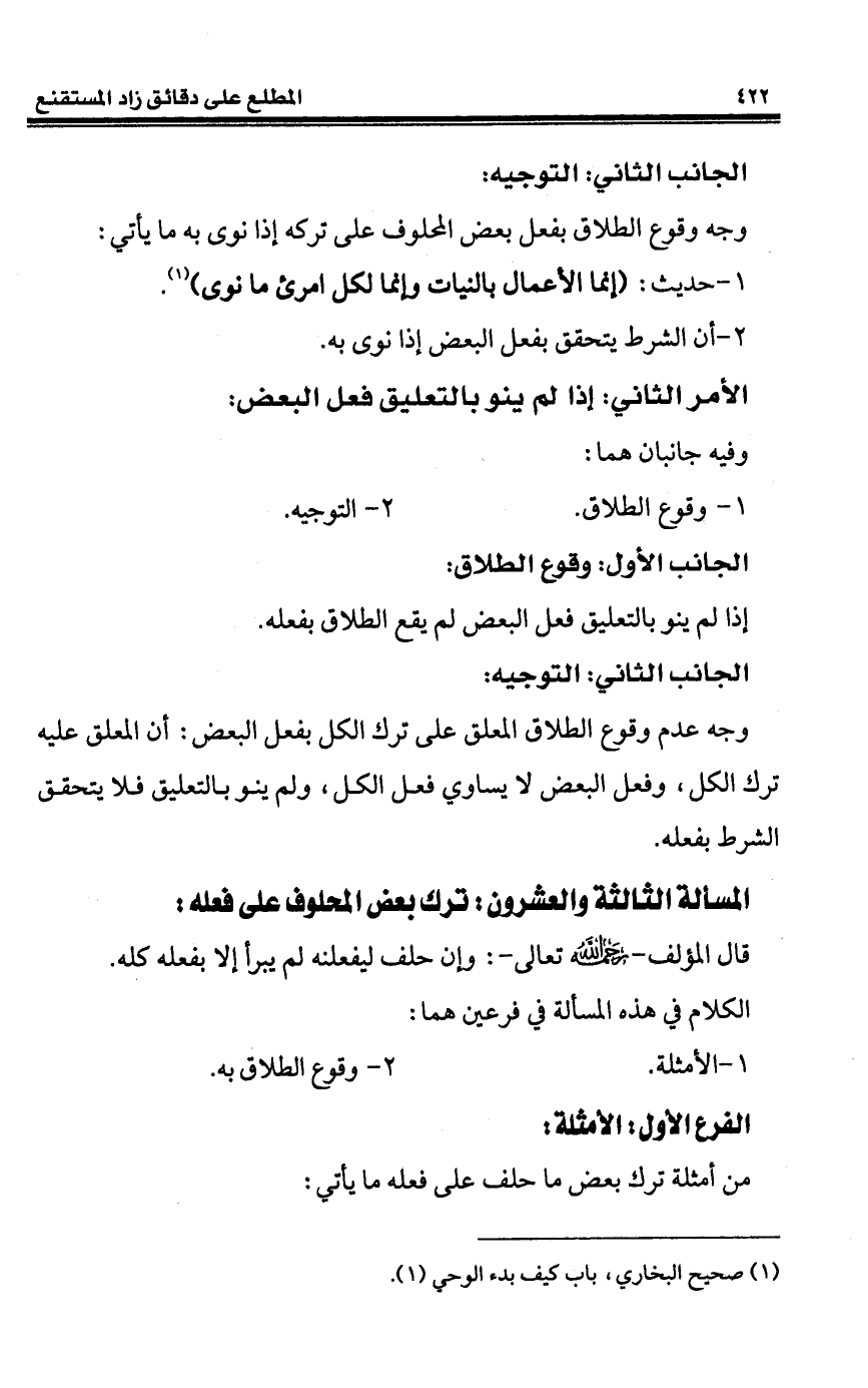وجه وقوع الطلاق بفعل بعض المحلوف على تركه إذا نوى به ما يأتي: