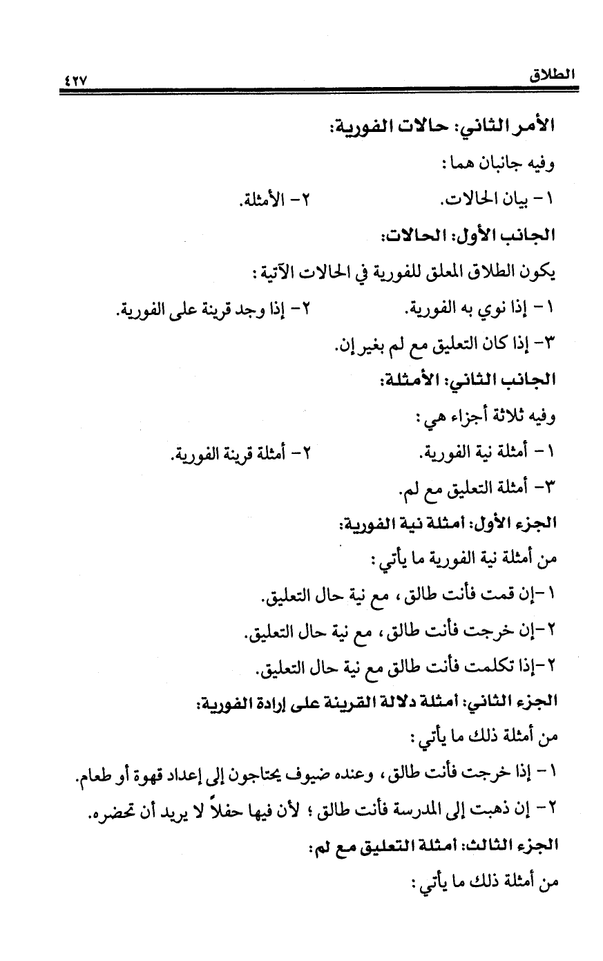 يكون الطلاق المعلق للفورية في الحالات الآتية: