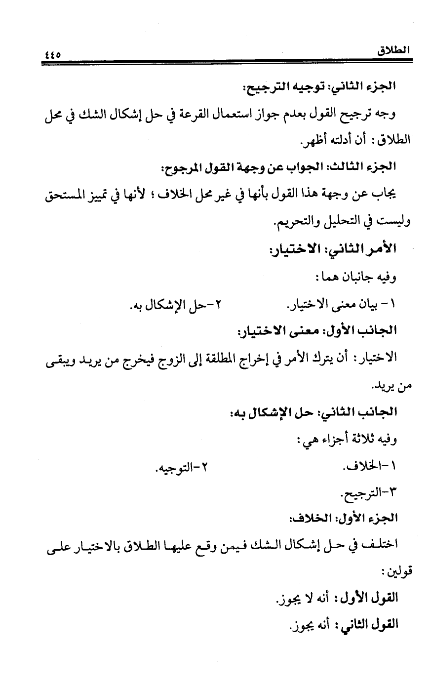 اختلف في حل إشكال الشك فيمن وقع عليها الطلاق بالاختيار على قولين: