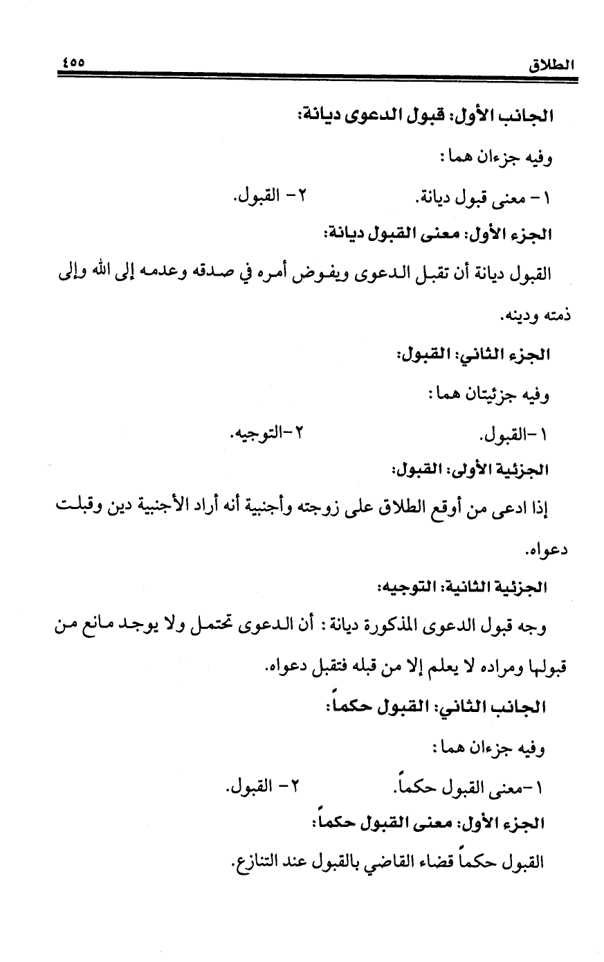 القبول ديانة أن تقبل الدعوى ويفوض أمره في صدقه وعدمه إلى الله وإلى ذمته ودينه.