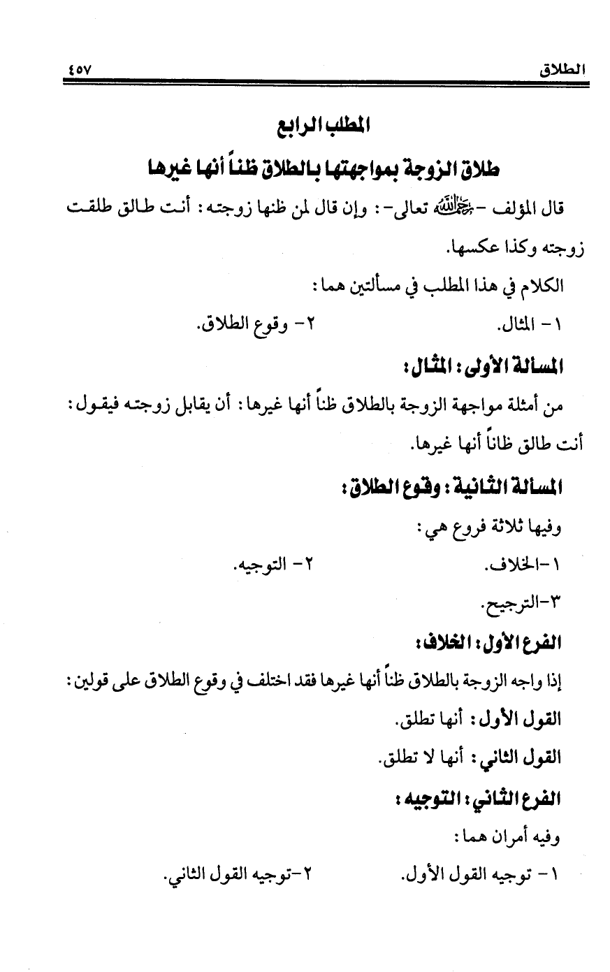 المطلب الرابع طلاق الزوجة بمواجهتها بالطلاق ظناً أنها غيرها