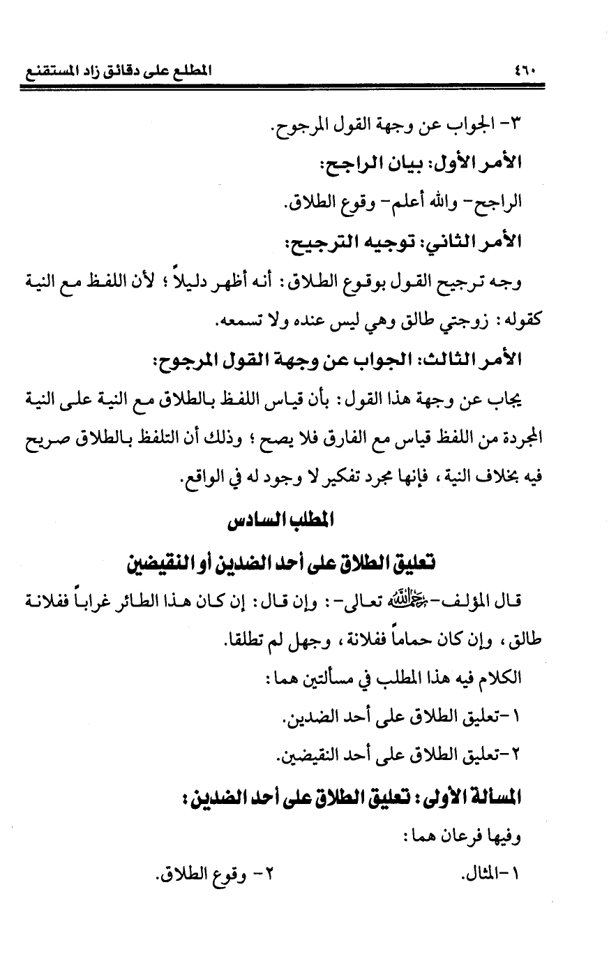 المطلب السادس (*) تعليق الطلاق على أحد الضدين أو النقيضين