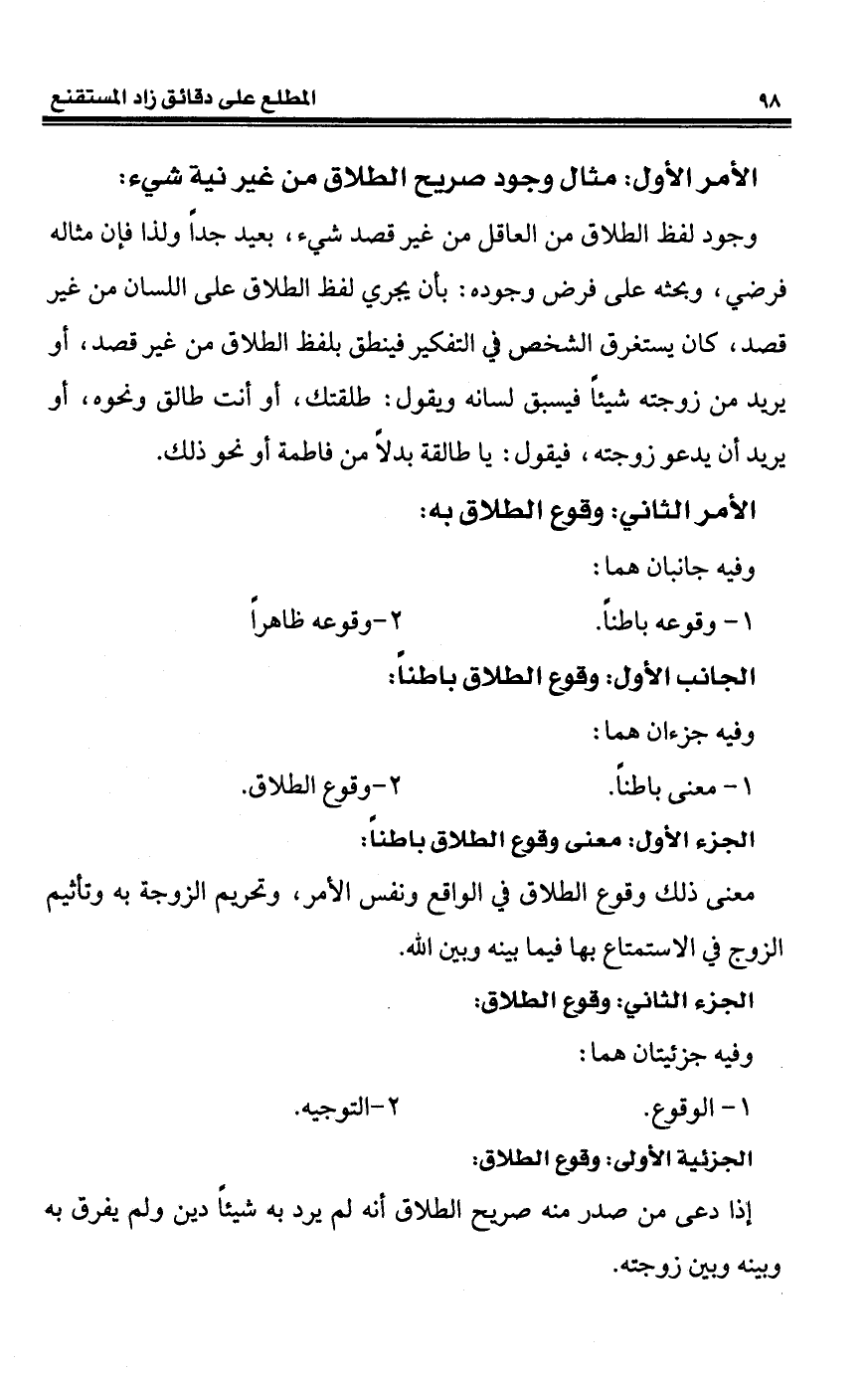الجزء الأول: معنى وقوع الطلاق باطنًا: