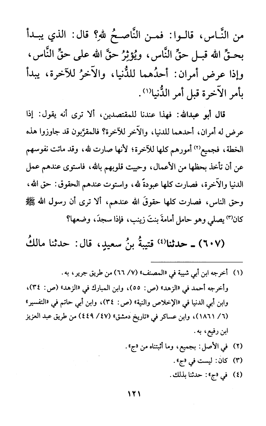 607 - حدثنا قتيبة بن سعيدٍ، قال: حدثنا مالك