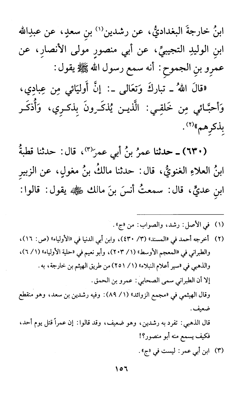 630 - حدثنا عمر بن أبي عمر، قال: حدثنا قطبة ابن العلاء الغنوي، قال: حدثنا مالك بن مغولٍ، عن الزبير ابن عدي، قال: سمعت أنس بن مالك رضي الله عنه يقول: قالوا