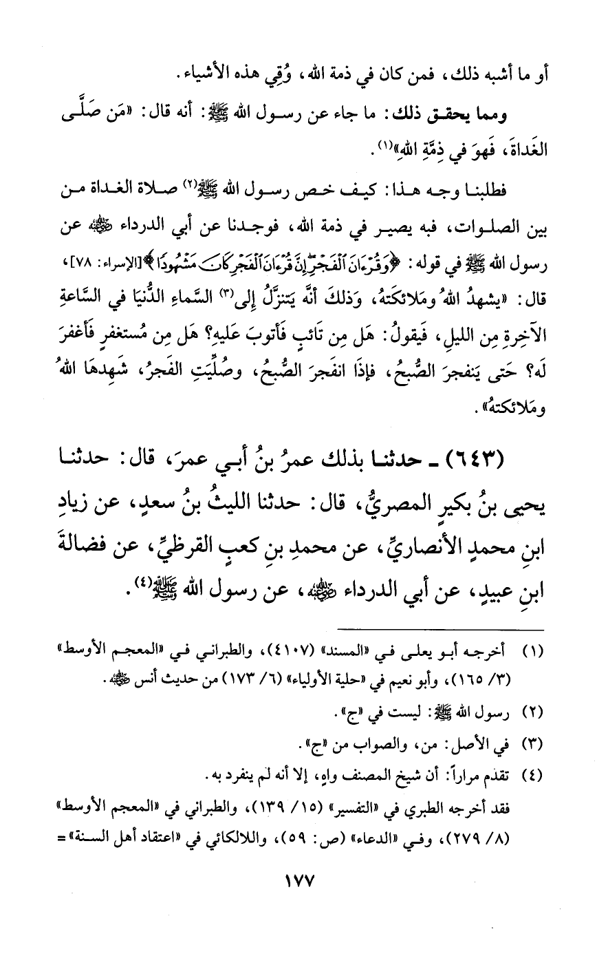 643 - حدثنا بذلك عمر بن أبي عمر، قال: حدثنا يحيى بن بكيرٍ المصري، قال: حدثنا الليث بن سعدٍ، عن زياد ابن محمد الأنصاري، عن محمد بن كعبٍ القرظي، عن فضالة ابن عبيدٍ، عن أبي الدرداء رضي الله عنه، عن رسول الله صلى الله عليه وسلم.
