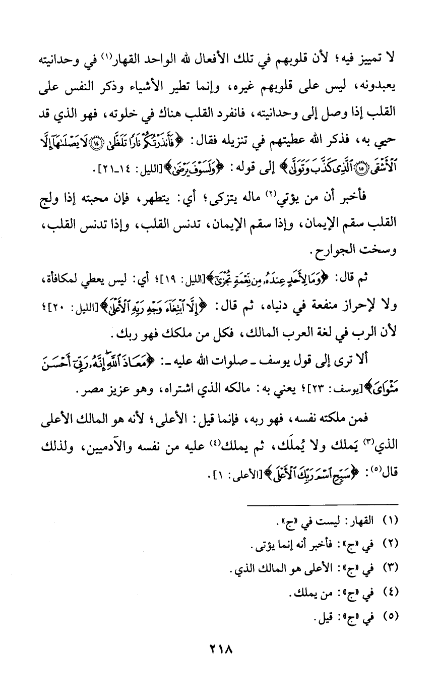 لا تمييز فيه؛ لأن قلوبهم في تلك الأفعال لله الواحد القهار في وحدانيته يعبدونه، ليس على قلوبهم غيره، وإنما تطير الأشياء وذكر النفس على القلب إذا وصل إلى وحدانيته، فانفرد القلب هناك في خلوته، فهو الذي قد حيي به، فذكر الله عطيتهم في تنزيله فقال: {فأنذرتكم ناراً تلظى. لا يصلاها إلا الأشقى. الذي كذب وتولى} إلى قوله: {ولسوف يرضى}.