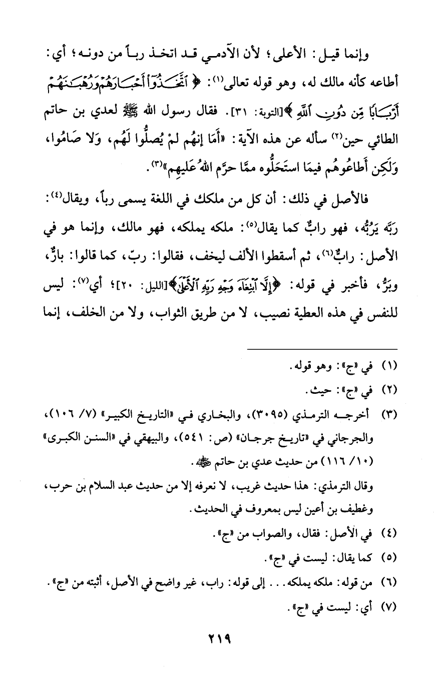 وإنما قيل: الأعلى؛ لأن الآدمي قد اتخذ رباً من دونه؛ أي: أطاعه كأنه مالك له، وهو قوله تعالى: {اتخذوا أحبارهم ورهبانهم أرباباً من دون الله}. فقال رسول الله صلى الله عليه وسلم لعدي بن حاتم الطائي حين سأله عن هذه الآية: ((أما إنهم لم يصلوا لهم، ولا صاموا، ولكن أطاعوهم فيما استحلوه مما حرم الله عليهم)).