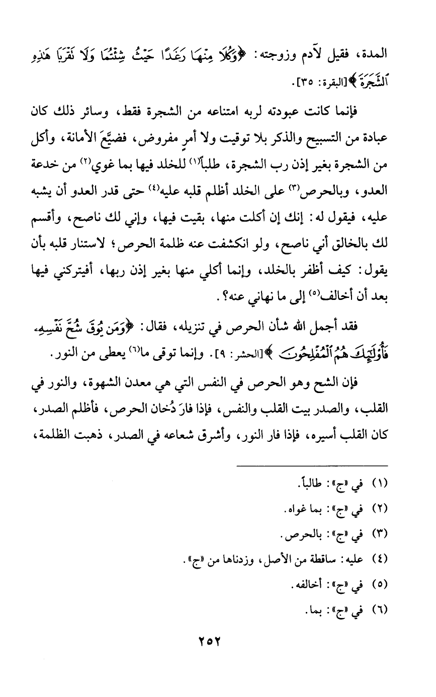 فقد أجمل الله شأن الحرص في تنزيله، فقال: {ومن يوق شح نفسه فأولئك هم المفلحون}. وإنما توقى ما يعطى من النور.
