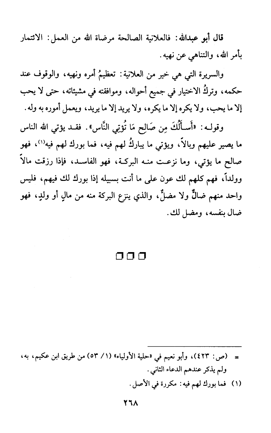 قال أبو عبد الله: فالعلانية الصالحة مرضاة الله من العمل: الائتمار بأمر الله، والتناهي عن نهيه.