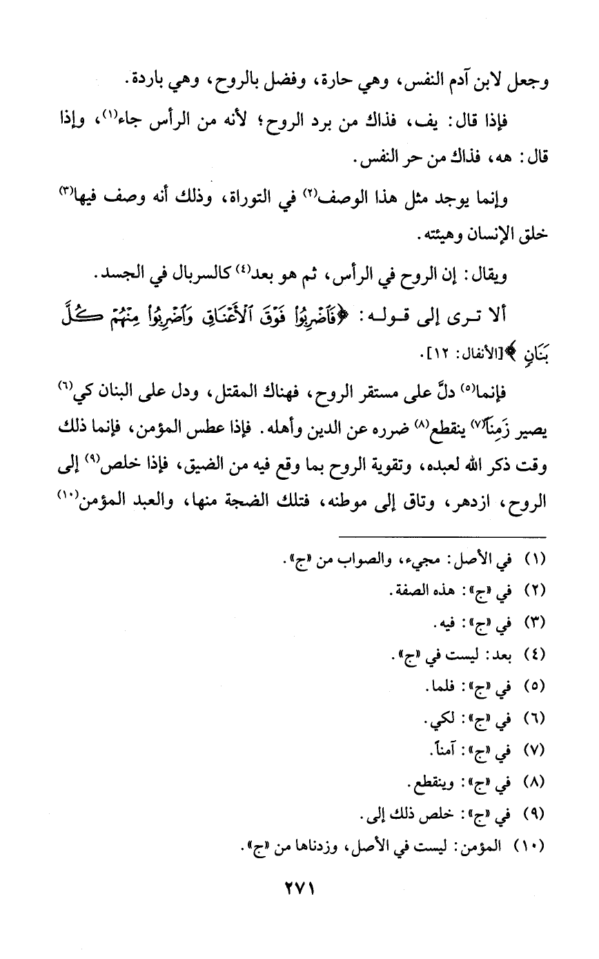 وجعل لابن آدم النفس، وهي حارة، وفضل بالروح، وهي باردة.