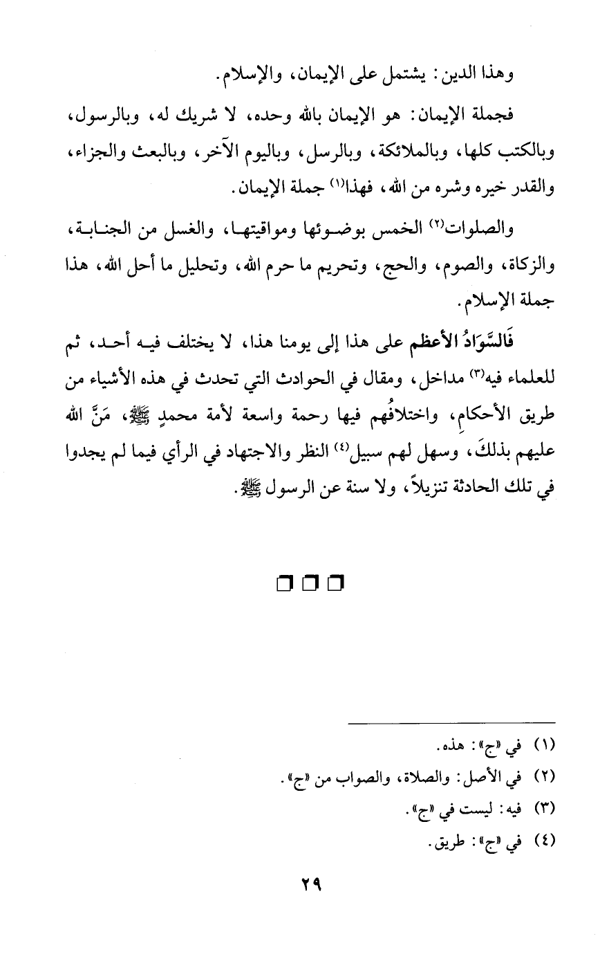 فالسواد الأعظم على هذا إلى يومنا هذا، لا يختلف فيه أحد، ثم للعلماء فيه مداخل، ومقال في الحوادث التي تحدث في هذه الأشياء من طريق الأحكام، واختلافهم فيها رحمة واسعة لأمة محمدٍ صلى الله عليه وسلم، من الله عليهم بذلك، وسهل لهم سبيل النظر والاجتهاد في الرأي فيما لم يجدوا في تلك الحادثة تنزيلاً، ولا سنة عن الرسول صلى الله عليه وسلم.