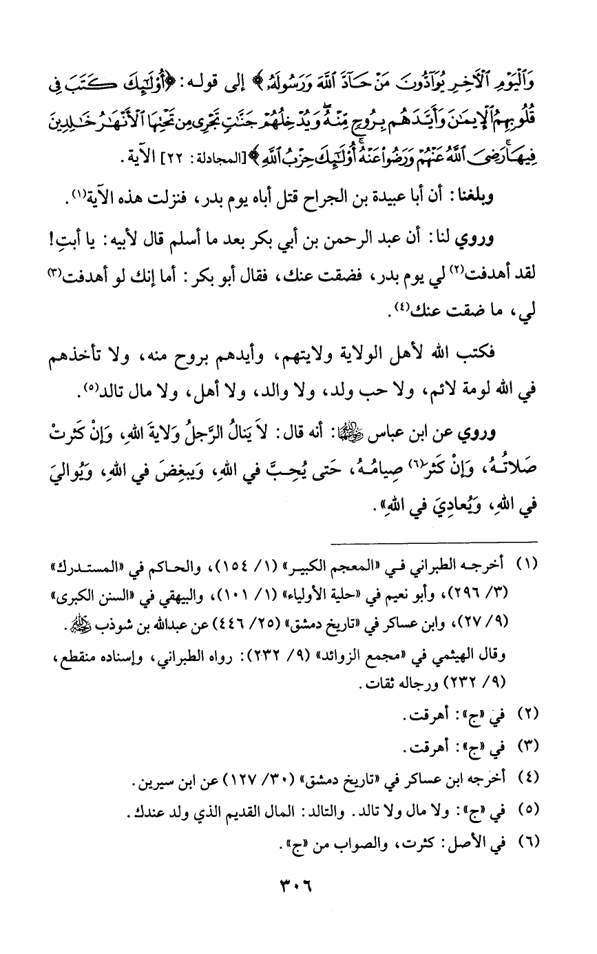 فكتب الله لأهل الولاية ولايتهم، وأيدهم بروح منه، ولا تأخذهم في الله لومة لائم، ولا حب ولد، ولا والد، ولا أهل، ولا مال تالد.