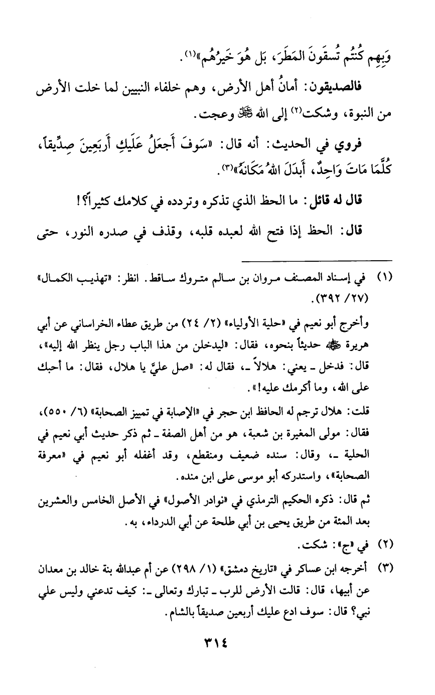 فالصديقون: أمان أهل الأرض، وهم خلفاء النبيين لما خلت الأرض من النبوة، وشكت إلى الله عز وجل وعجت.