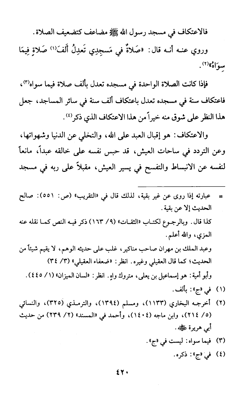 فإذا كانت الصلاة الواحدة في مسجده تعدل بألف صلاة فيما سواه، فاعتكاف سنة في مسجده تعدل باعتكاف ألف سنة في سائر المساجد، جعل هذا النظر على شوق منه خيراً من هذا الاعتكاف الذي ذكر.