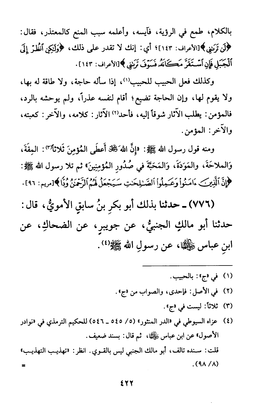 776 - حدثنا بذلك أبو بكر بن سابقٍ الأموي، قال: حدثنا أبو مالك الجنبي، عن جويبرٍ، عن الضحاك، عن ابن عباس رضي الله عنهما، عن رسول الله صلى الله عليه وسلم.