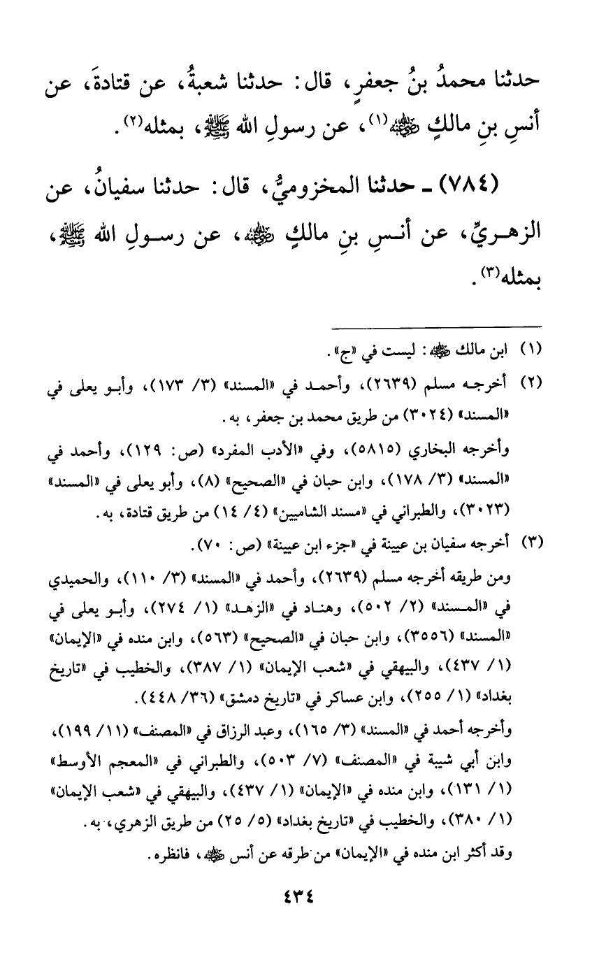 784 - حدثنا المخزومي، قال: حدثنا سفيان، عن الزهري، عن أنس بن مالكٍ رضي الله عنه، عن رسول الله صلى الله عليه وسلم بمثله.