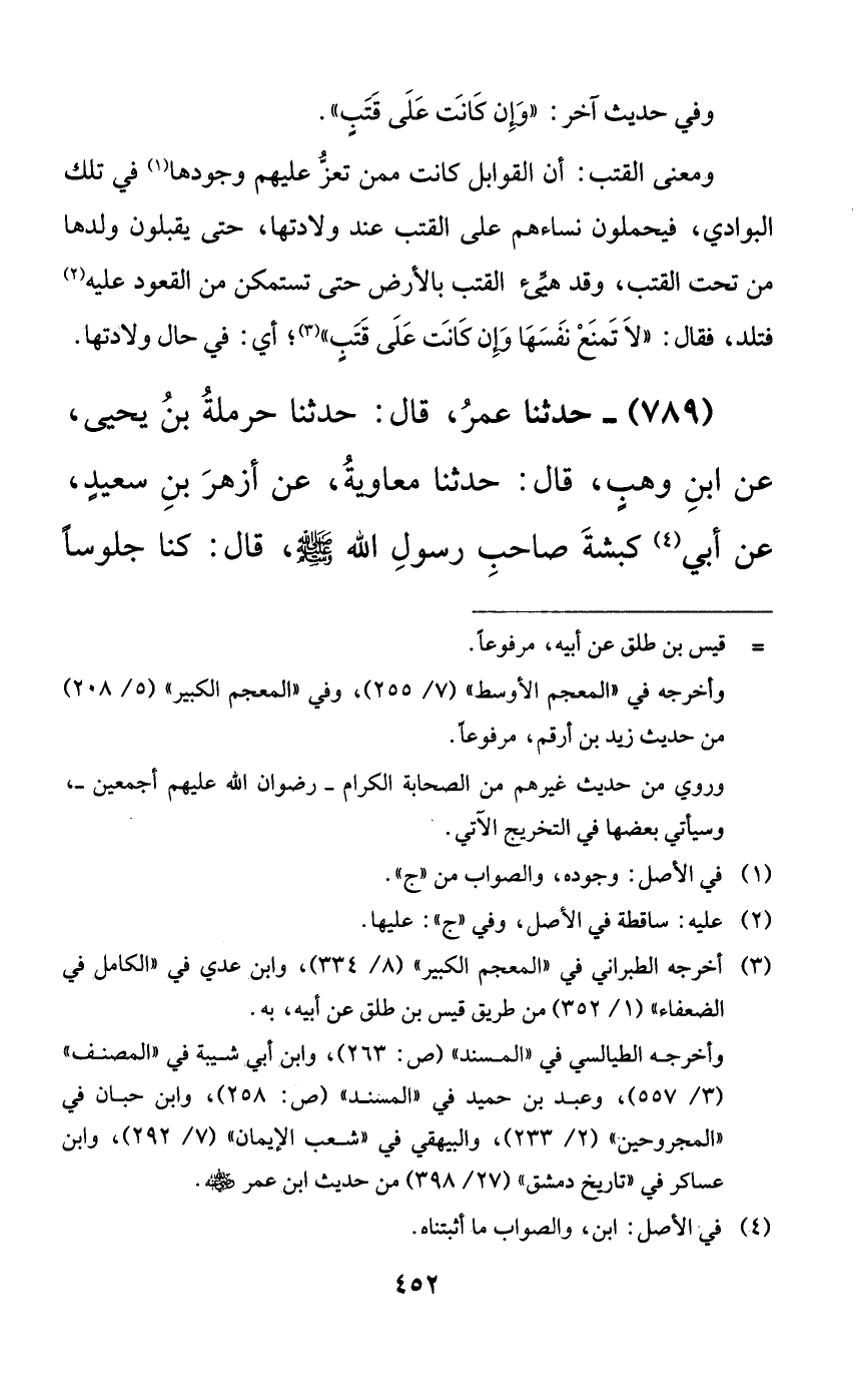 789 - حدثنا عمر، قال: حدثنا حرملة بن يحيى، عن ابن وهبٍ، قال: حدثنا معاوية، عن أزهر بن سعيدٍ، عن أبي كبشة صاحب رسول الله صلى الله عليه وسلم، قال: كنا جلوساً