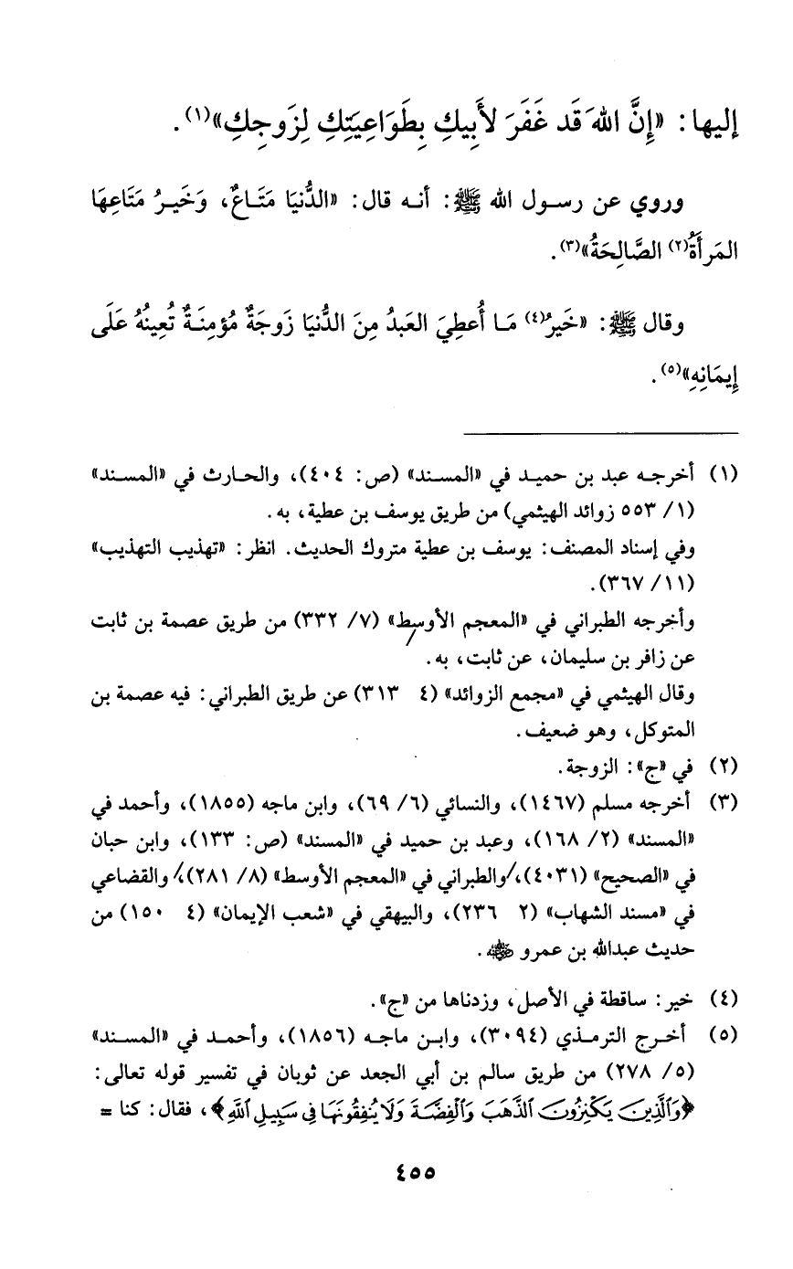 إليها: ((إن الله قد غفر لأبيك بطواعيتك لزوجك)).