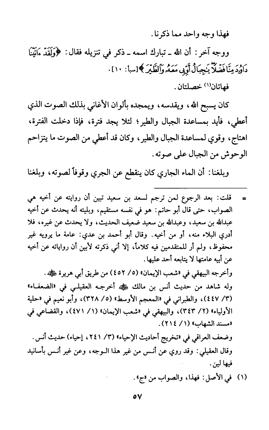 ووجه آخر: أن الله -تبارك اسمه- ذكر في تنزيله فقال: {ولقد آتينا داود منا فضلاً يا جبال أوبي معه والطير}.