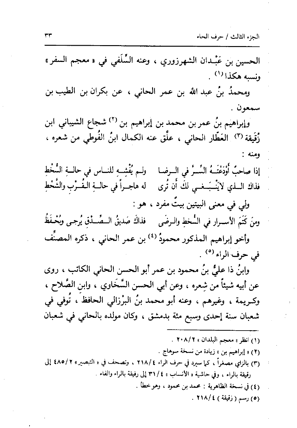 الْحُسَيْن بن عَبْدَانِ الشهرزوري وَعنهُ السلَفِي فِي مُعْجم السّفر وَنسبه هَكَذَا. وَمُحَمّد بن عبد الله بن عمر الحاني عَن بكران بن الطّيب بن سمعون. وَإِبْرَاهِيم بن عمر بن مُحَمَّد بن إِبْرَاهِيم بن شُجَاع الشَّيْبَانِيّ ابْن زقيقة الْعَطَّار الحاني علق عَنهُ الْكَمَال ابْن الفوطي من شعره وَمِنْه: